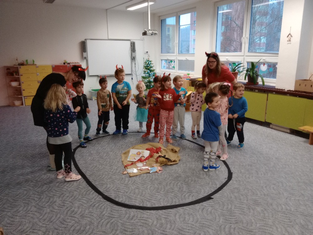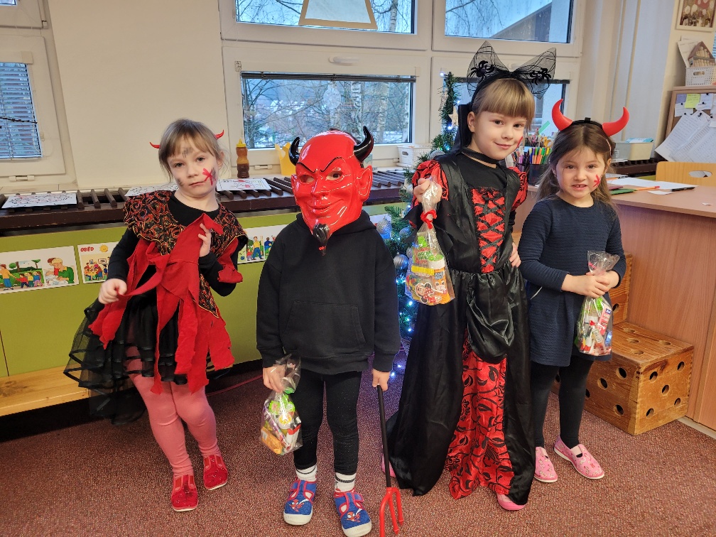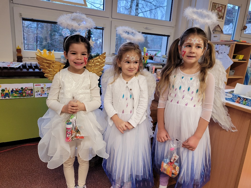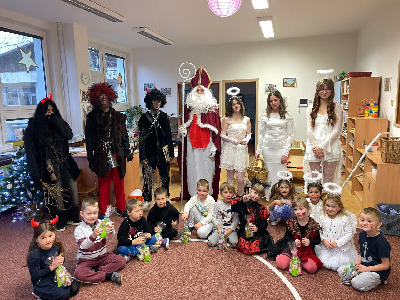 V pátek 5.12. do školky dorazil Mikuláš, anděl a také čert. Děti je přivítaly písničkou, kterou poctivě trénovaly. Jako odměnu dostaly balíček plný dobrot. Vše proběhlo v klidné atmosféře a děti si to moc užily.