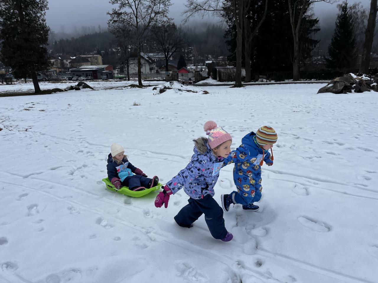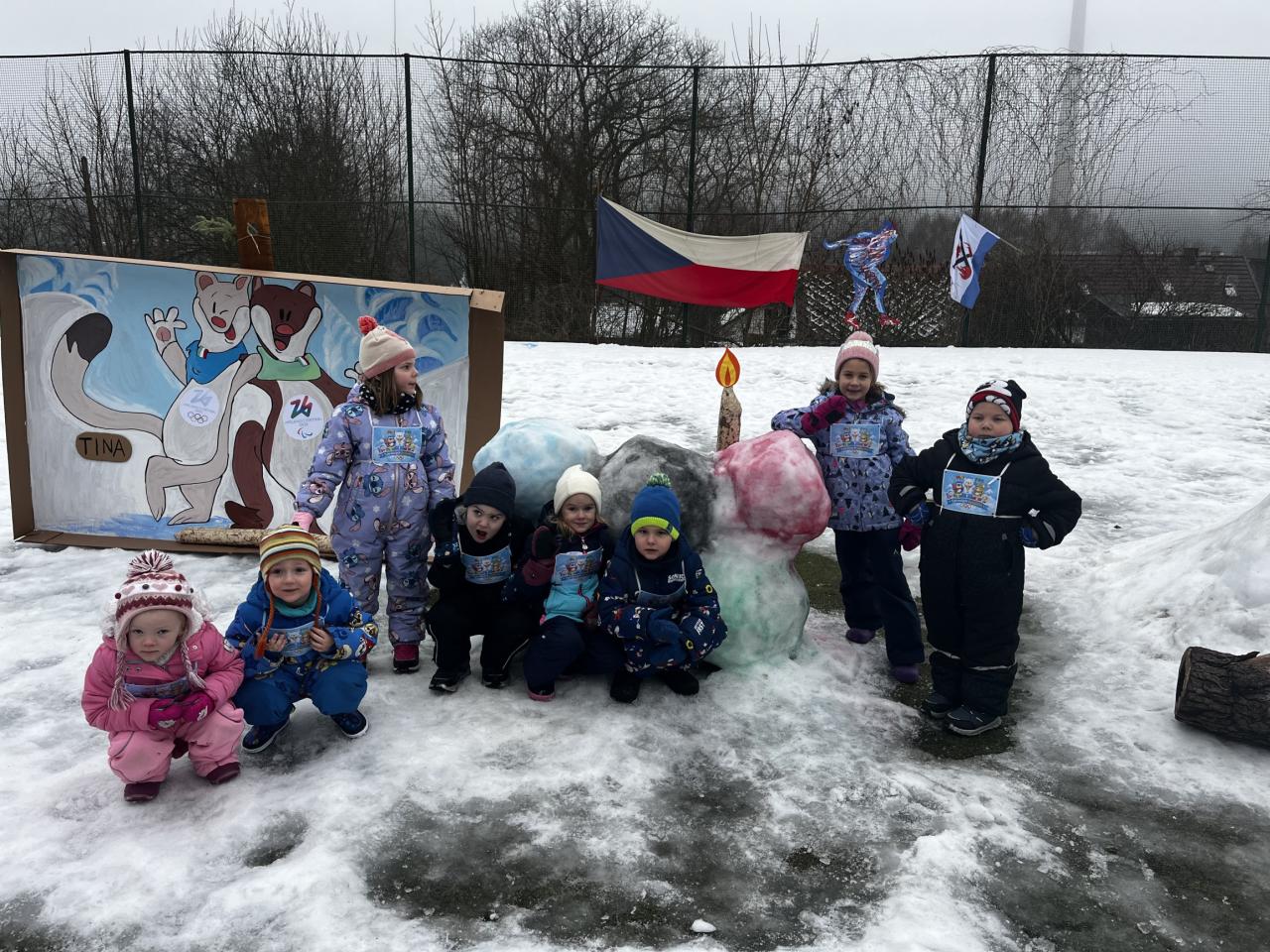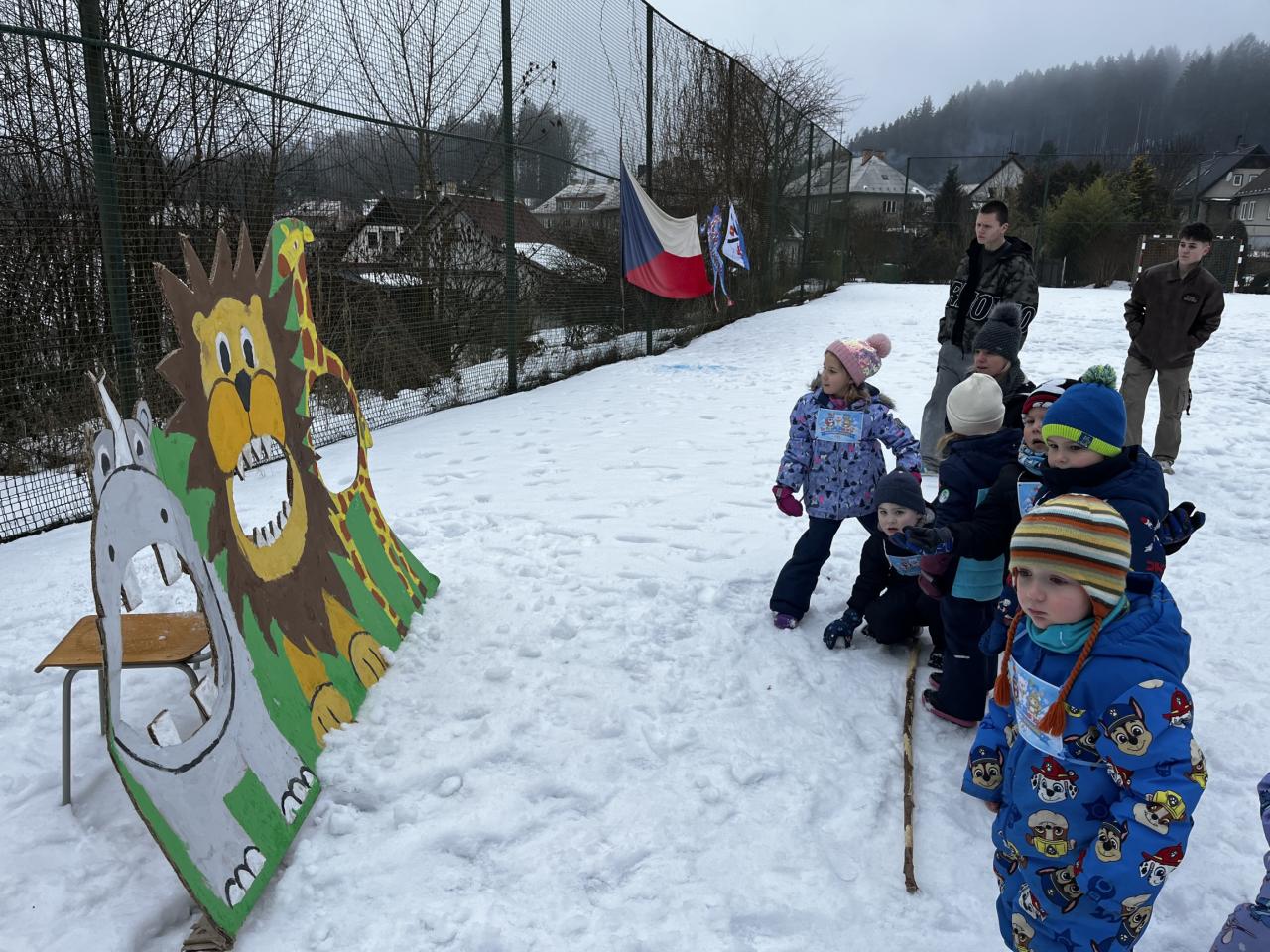 Pak už jsme se vrhli na samotné sportování. Družstvo "malých šampionů" si vyzkoušelo na příklad : lední hokej, hod sněhovou koulí, závody nebo psí spřežení.