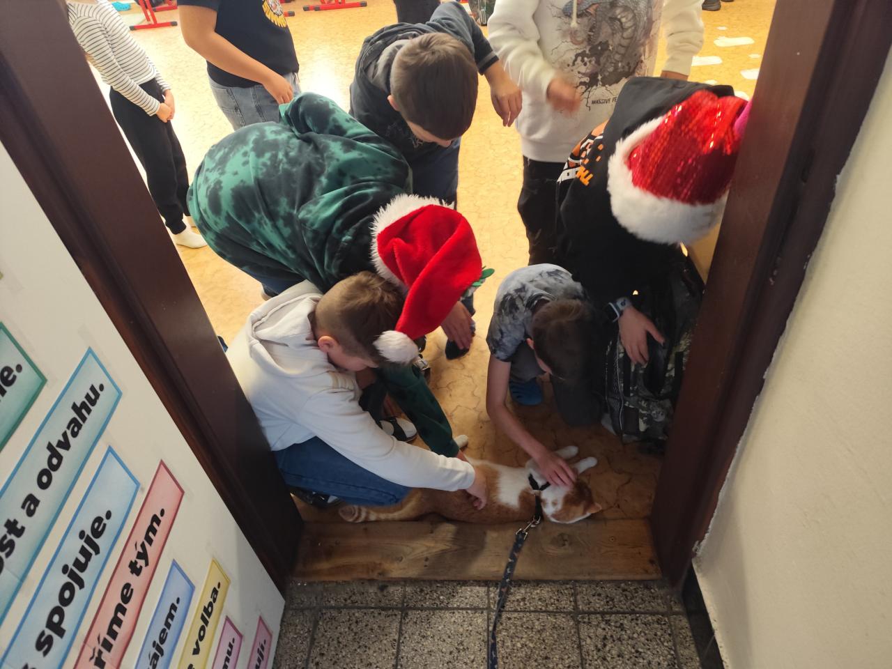 Náš Dobbík pravidelně chodí do školy a s radostí se nechá pomazlit s každým dítětem, ať už v 1., 3. nebo jakékoli jiné třídě.