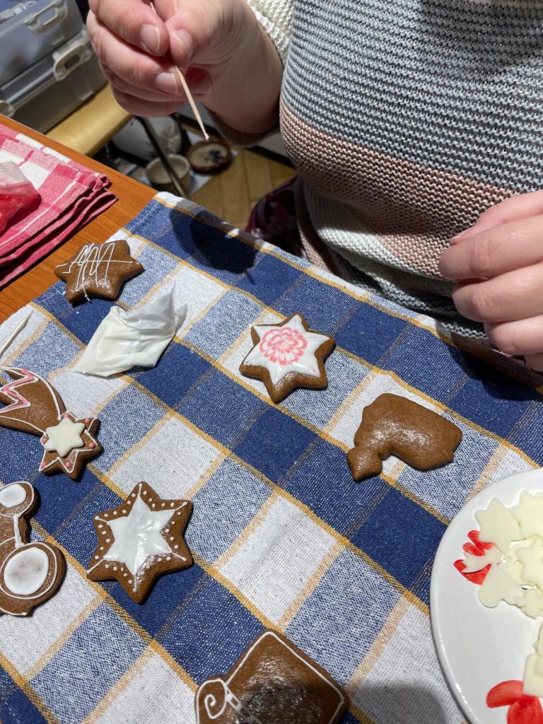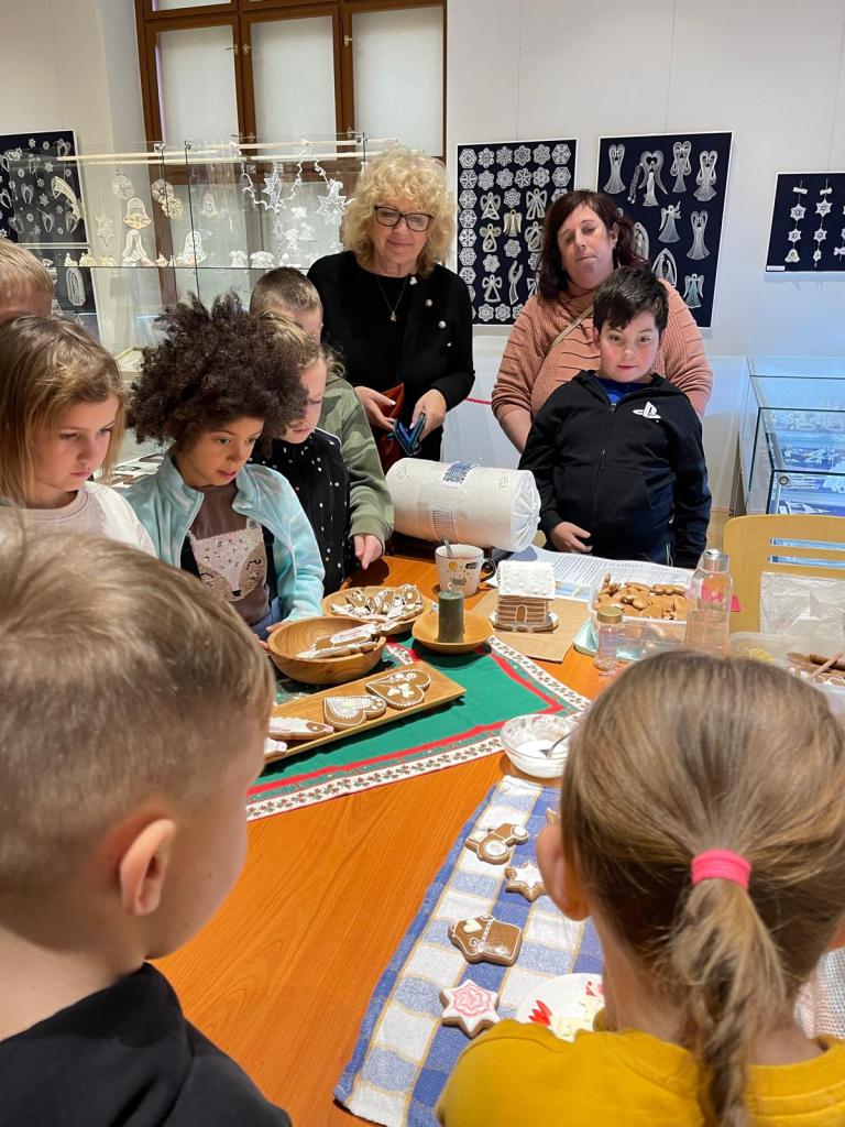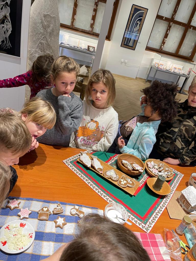 Získané dovednosti z muzea využily v Ježíškově dílně, kde si samy vyzkoušely vlastní zdobení perníčků. S velkým nadšením vytvářely různé tvary, které si většina dětí odvezla domů – někteří si na svých výtvorech pochutnali hned na místě.