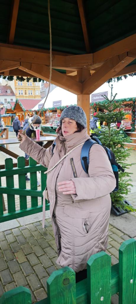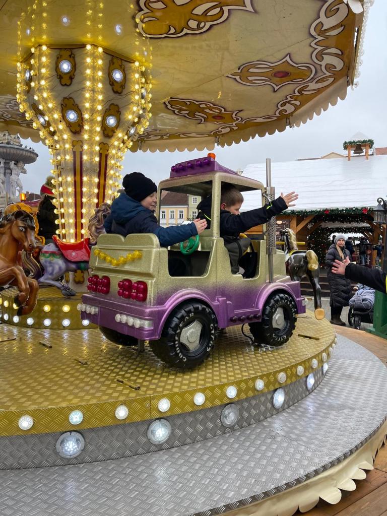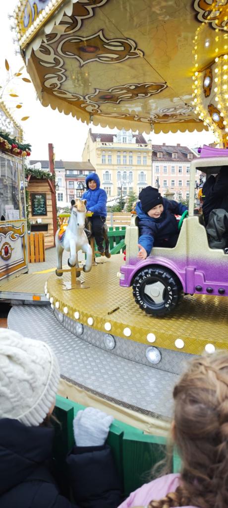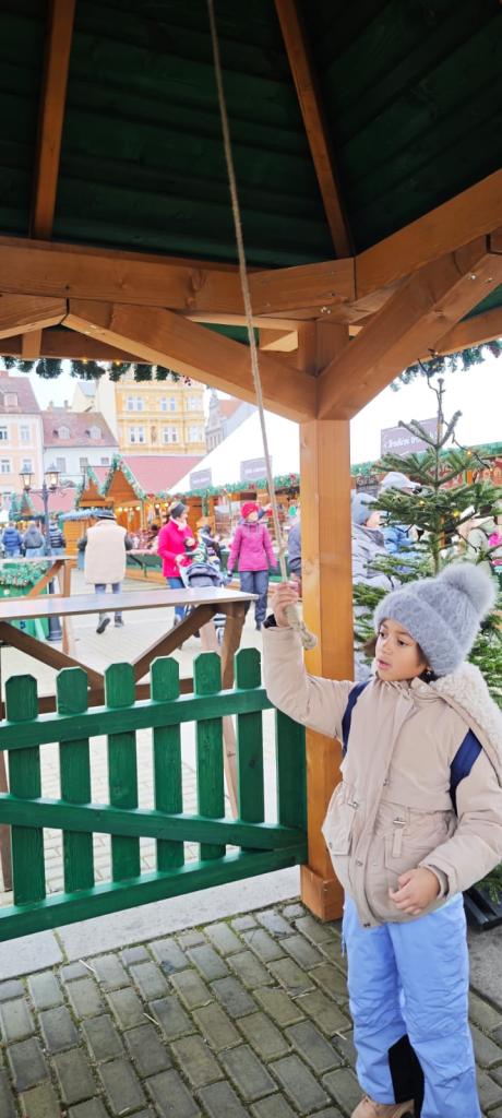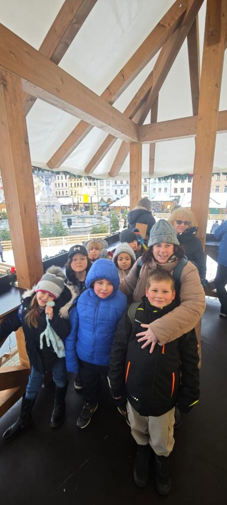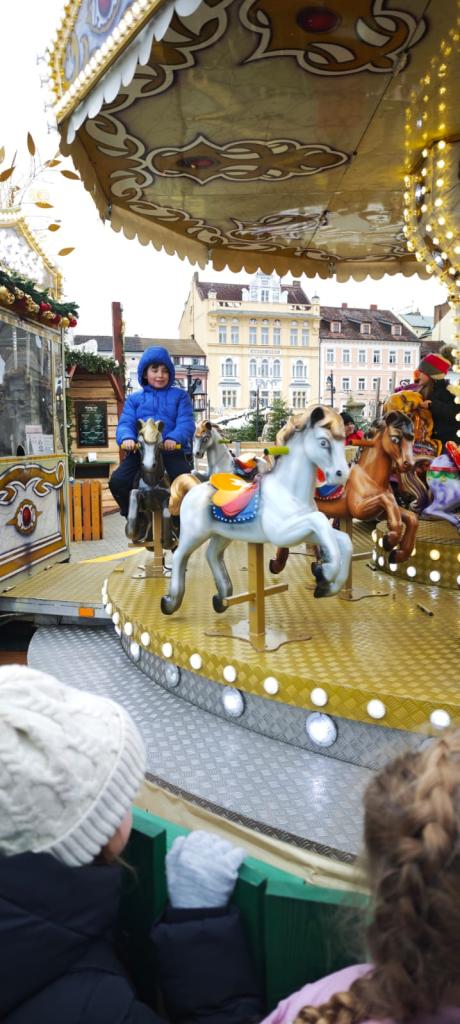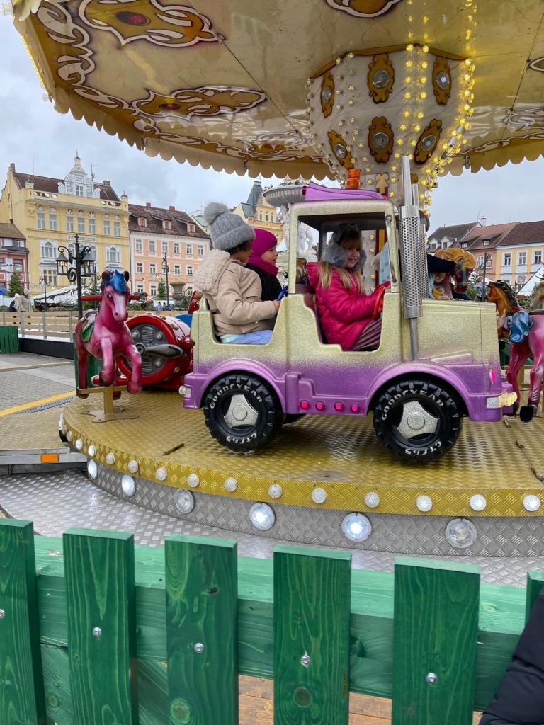 Poté se třída přesunula na vánoční trhy na náměstí, kde děti obdivovaly zdobené stánky, poslechly si koledy, ochutnaly trdelník, svezly se na kolotoči a sledovaly předvánoční ruch města.