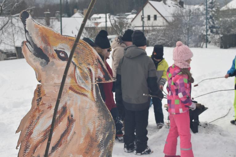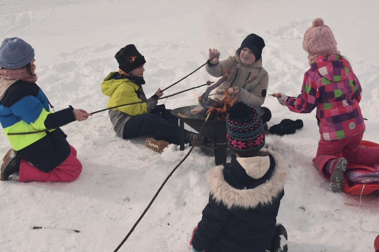 Děti z E-kroužku obnovily ve středu polorozpadlé torzo alpínského iglú, které nám posloužilo jako mrazák i chlaďák pro docela obstojnou zásobu buřtů, párků a klobásek. Dvacet pět javorových opékacích prutů jsme zapíchli do mocných ledových boků iglú, aby si každý z malých loučovických lyžníků mohl napíchnout svůj kousek uzeninky či šumavského krajíce chleba a opéci si vše na ocelovém kotli.