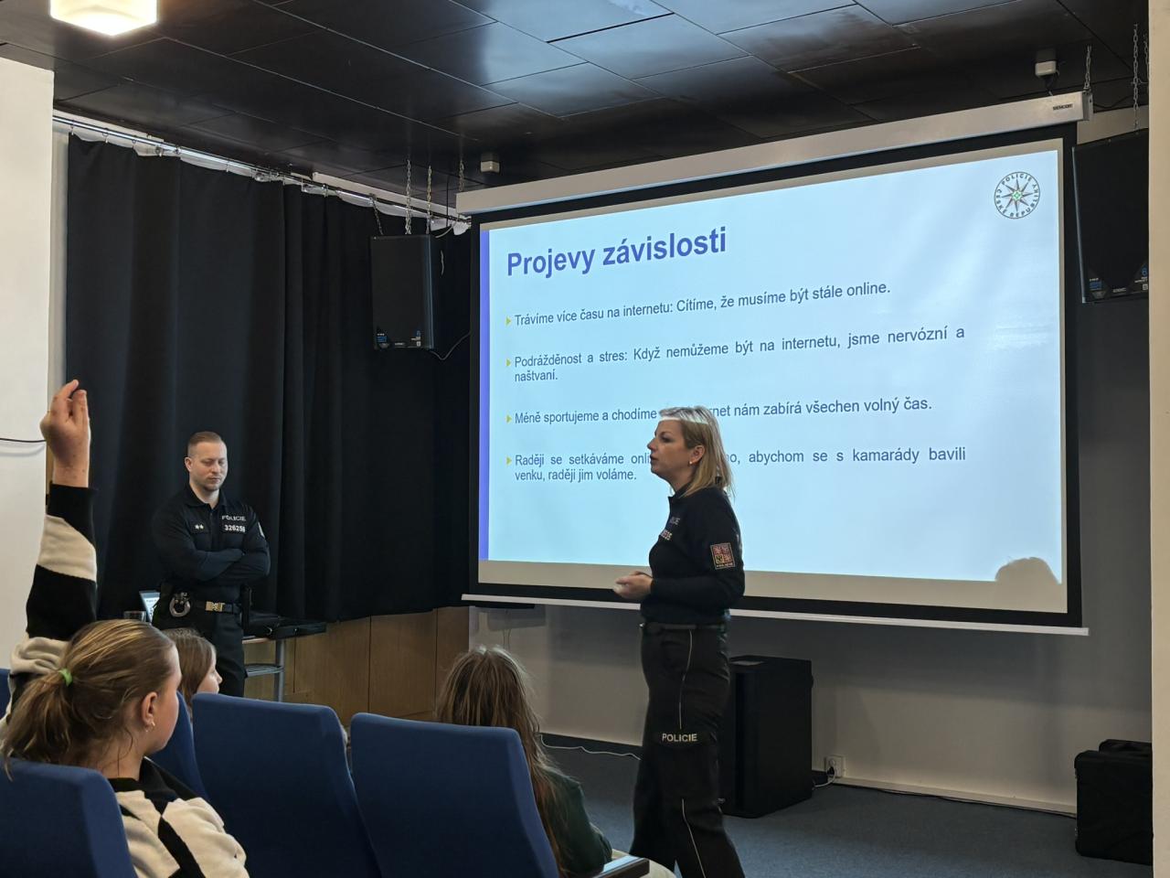 Velká část besedy byla věnována také tématu závislosti na sociálních sítích. Žáci se dozvěděli, jak se závislost může projevovat, jaké má důsledky pro zdraví i vztahy a jak poznat, že už tráví na internetu příliš mnoho času.
