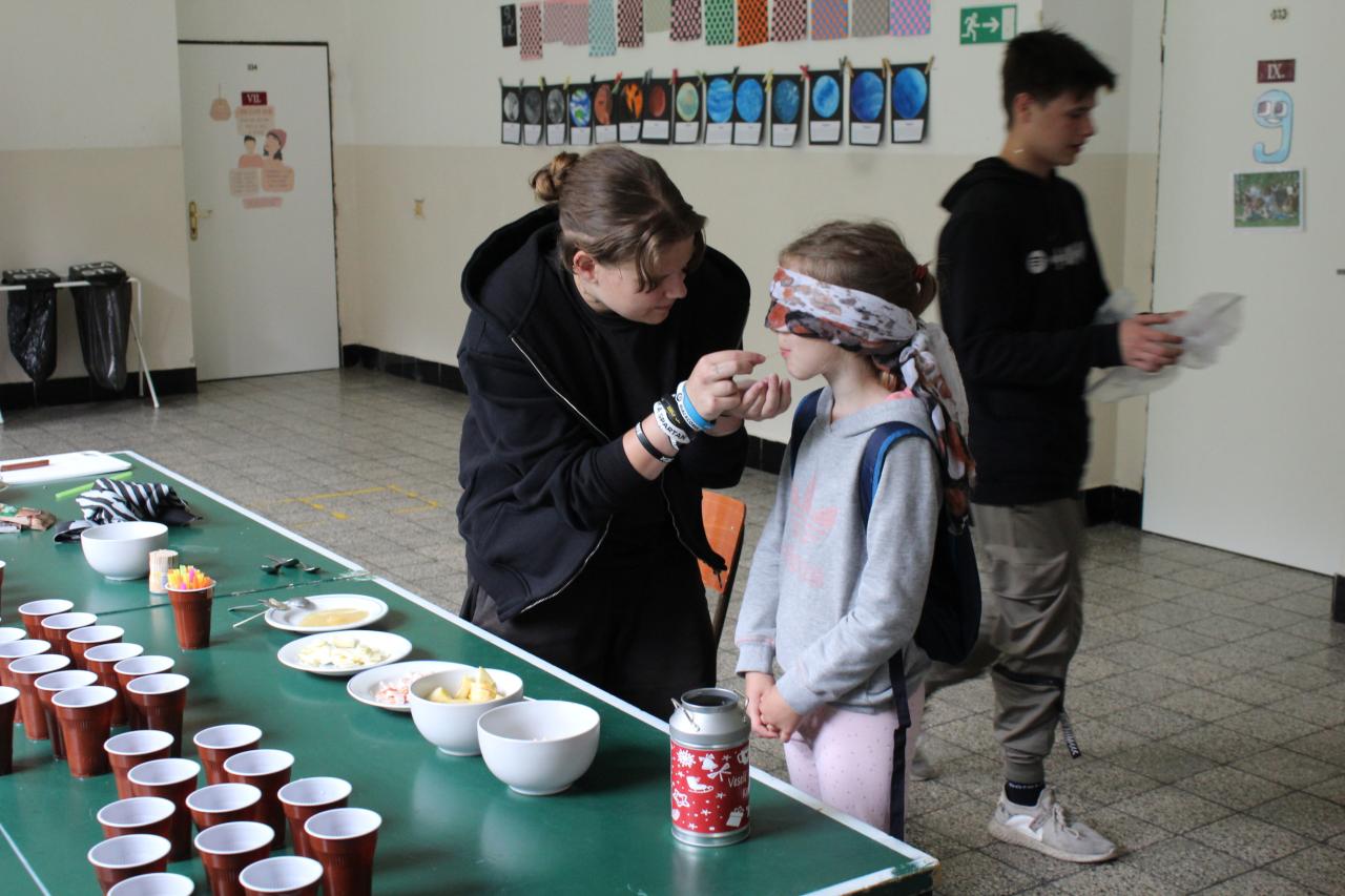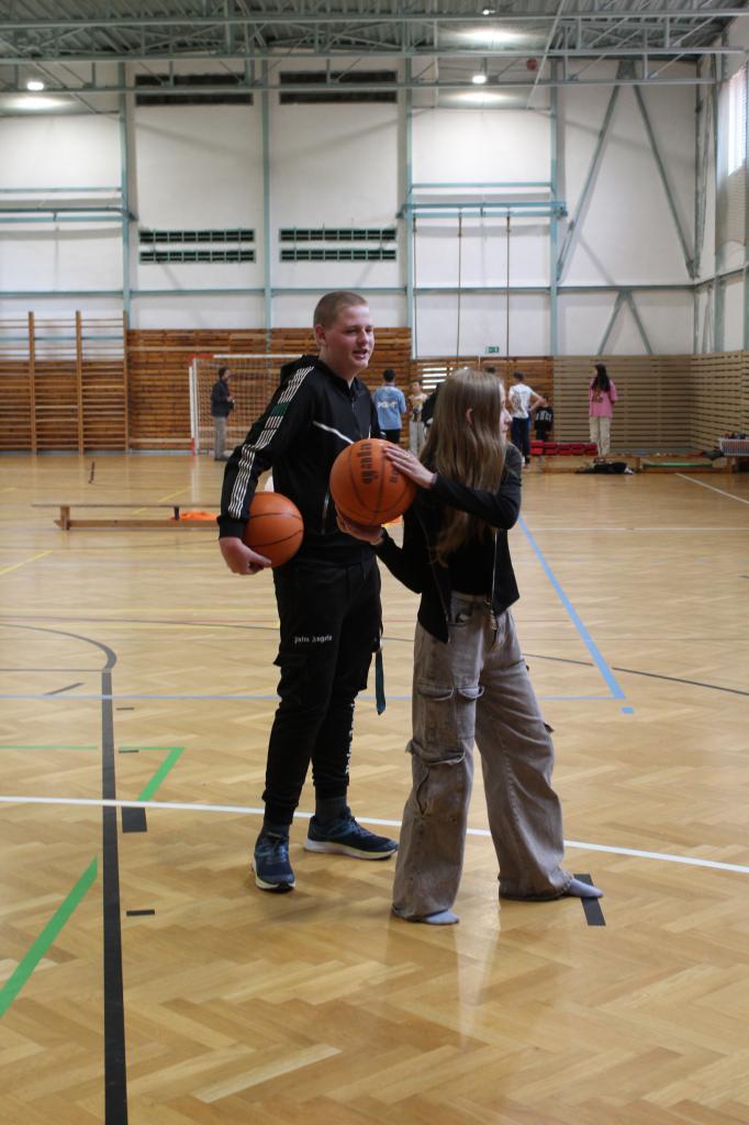 Děti byly rozděleny do skupin pod vedením stařších spolužáků. Každá skupinka měla za úkol projít stanoviště, která si pro ně připravili žáci z 9. třídy. Za každé stanoviště dostaly nakreslenou značku nebo razítko a za splnění všech je na konci dne čekala sladká odměna. A jaká stanoviště byla připravena? Děti házely na koš, trefovaly se do brány, skákaly přes švihadla, jezdily na koloběžkách, poznaly základy sebeobrany a vyzkoušely poznávačku chutí. Čekalo na ně také stanoviště zdravovědy, kde si mohly zkusit, jak ošetřit raněného a přivolat první pomoc.