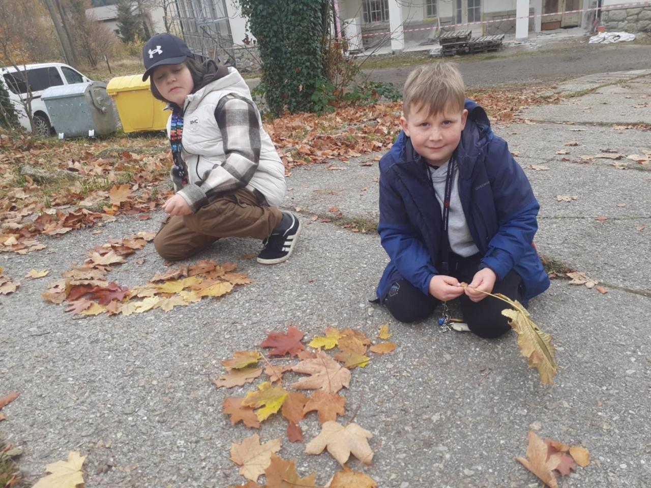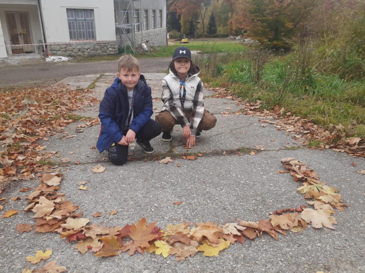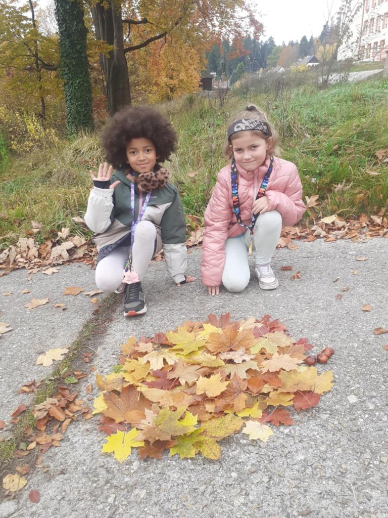 Pak jsme se vydali do lesa za školou. Sbírali jsme listy, větvičky, šišky a další dary přírody, které jsme později využili při tvoření. Každý si mohl postavit domeček pro lesní skřítky nebo úkryt pro hmyz, aby drobní obyvatelé lesa měli bezpečné místo na zimu.