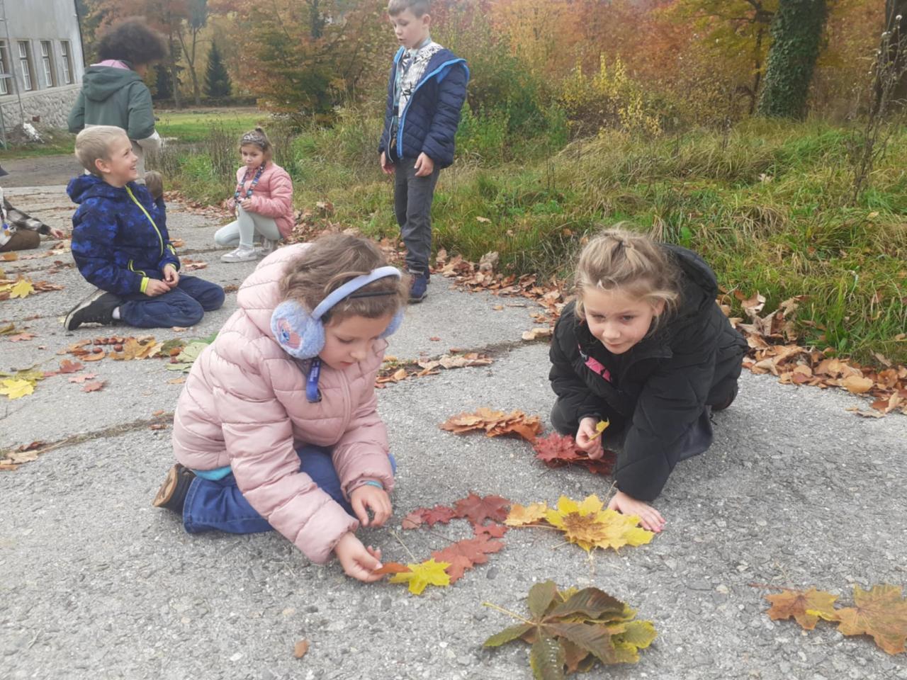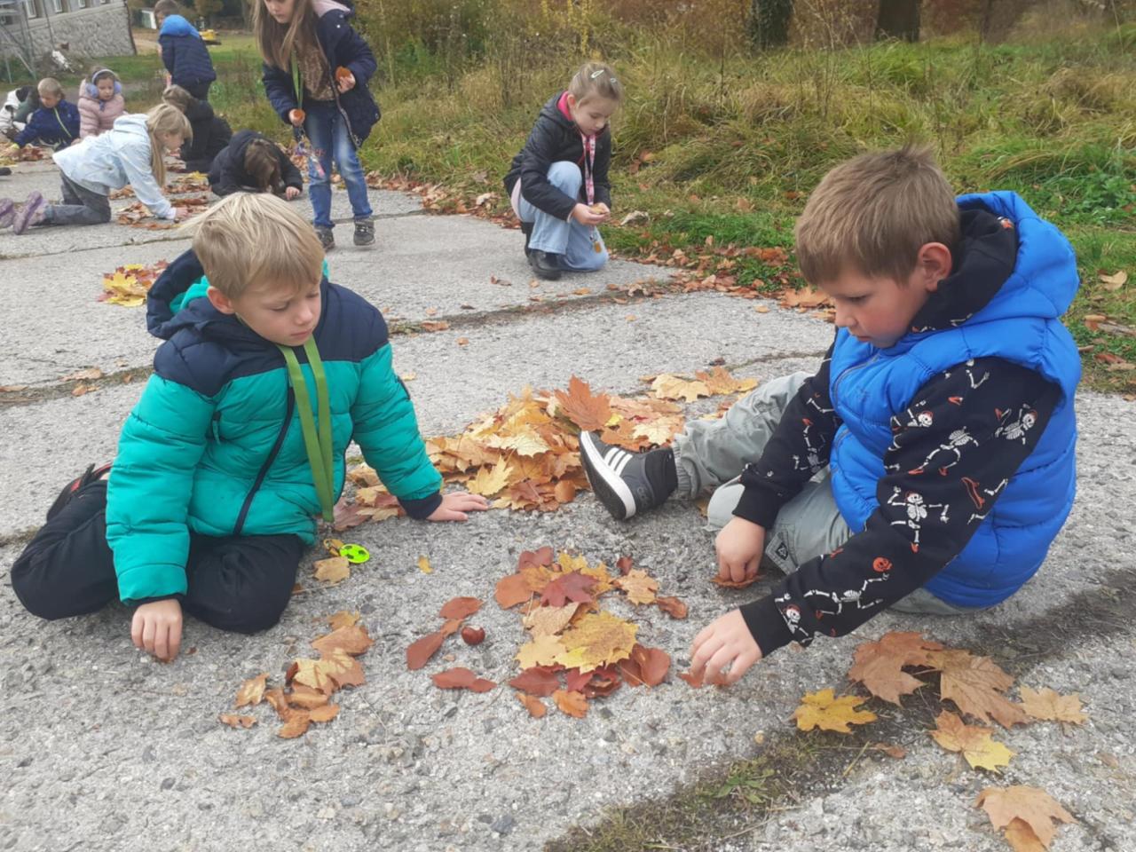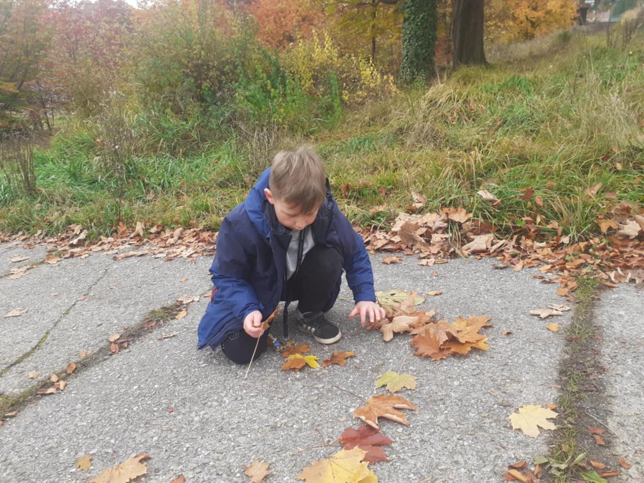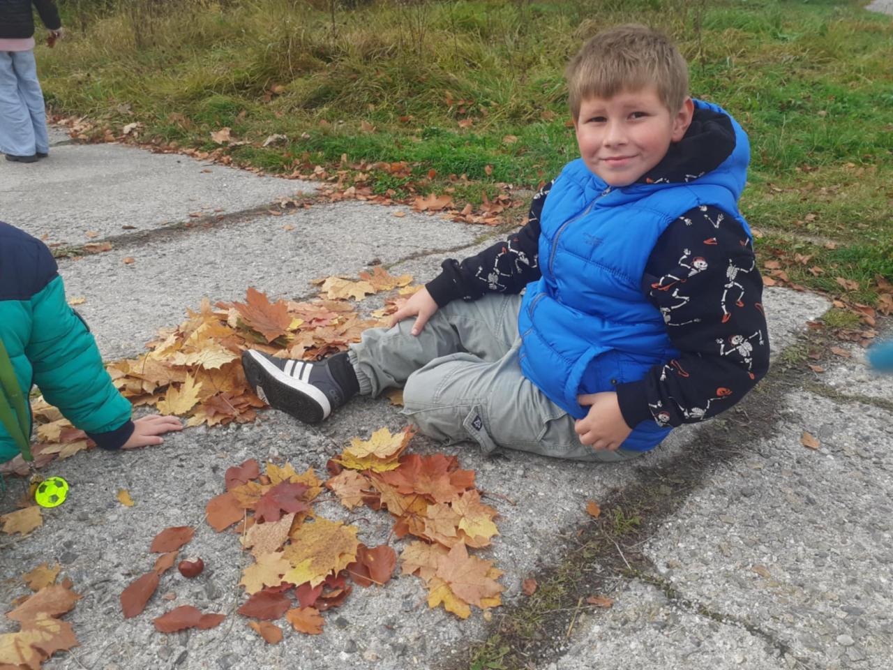 Začali jsme v parku pod školou, kde jsme nasbírali spoustu listů, kaštanů a žaludů. Z těchto přírodních pokladů děti tvořily obrázky – zvířátka, květiny i fantazijní motivy. Ukázalo se, jak jsou šikovní a nápadití – každý obrázek byl originál.