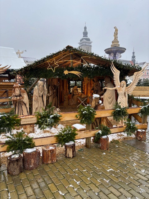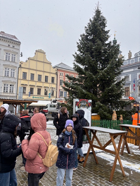 Po programu jsme se společně přesunuli na vánoční trhy na českobudějovickém náměstí. Kromě prohlídky stánků jsme si vychutnali vánoční atmosféru, podívali jsme se na vánoční výzdobu a ochutnali různé dobroty.
