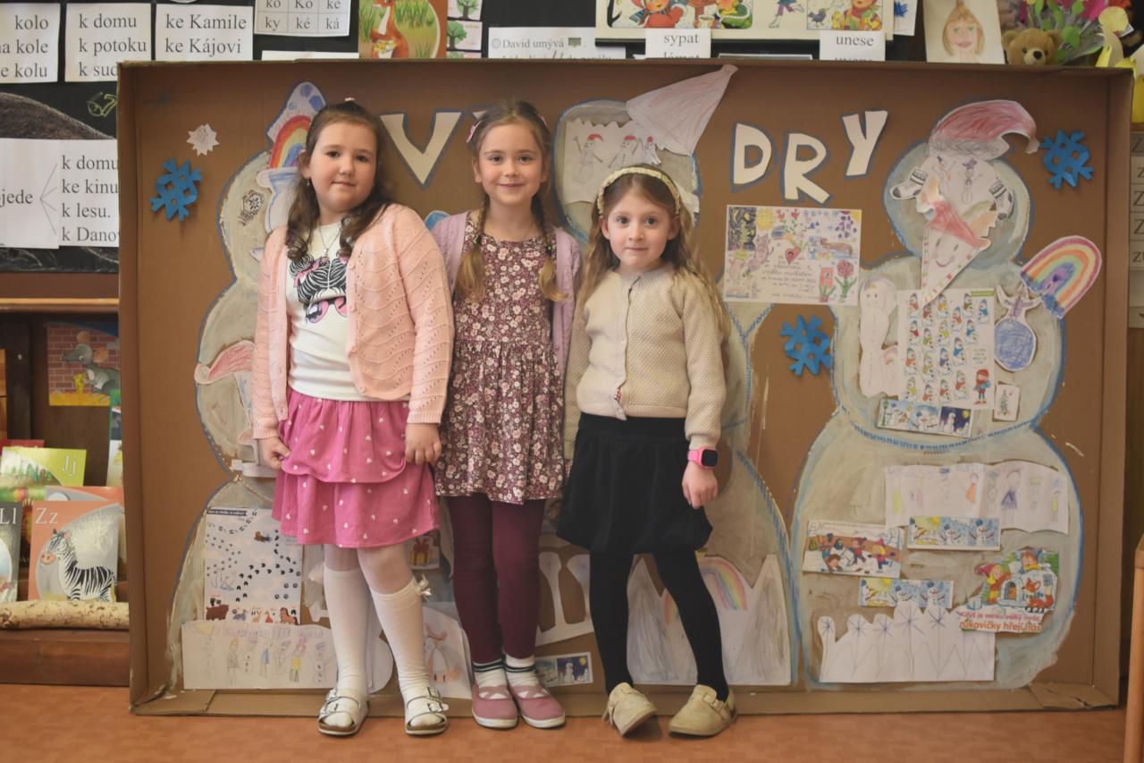 Při té velké slávě praskala naše vydří třída ve švech. Každé vydřičce a každému vydrýskovi přišli pogratulovat jejich maminky, tatínkové, babičky a dědečkové - na skok přišla i naše milá paní zástupkyně Martina.