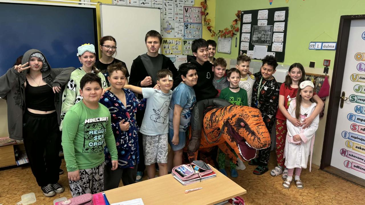 Naši deváťáci letos pojali legraci ve velkém - a přichystali nám Pyžamový den. Jak se ukázalo, poctivá příprava kostýmu dala leckomu pěkně zabrat! Ale stálo to za to - zúčastnila se většina školy i s učitelským sborem. A ospalé to opravdu nebylo...