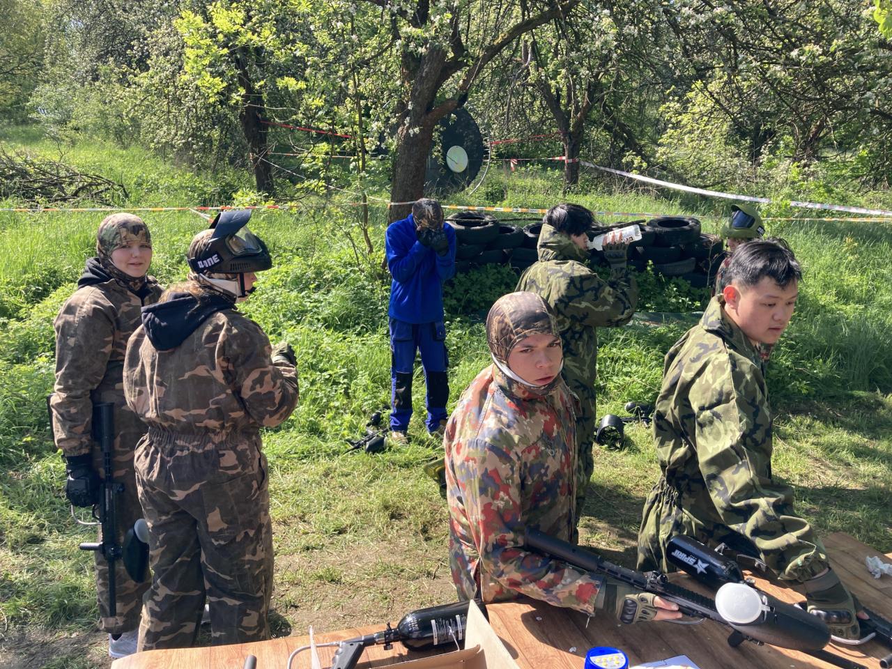 Odvážlivci přihlášení na paintball vyrazili autobusem do Českého Krumlova- konkrétně do Nového Spolí. Zde se nachází areál, který nabízí zážitek plný adrenalinu. Oblékli jsme se do speciálních kombinéz, dostali jsme potřebné vybavení a šli jsme na věc. Byli jsme rozdělení do skupin, vyzkoušeli jsme si různé druhy her a společně vymýšleli strategie.