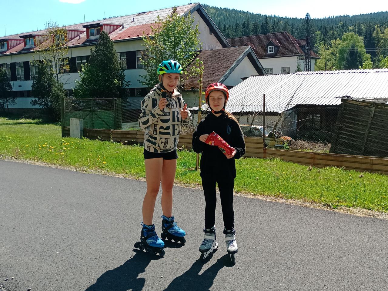 Další skupinkou byly in-line brusle. Pro někoho premiéra, pro jiného oblíbená sportovní činnost. Ráno jsme si v tělocvičně vyzkoušeli trasu nanečisto a poté jsme vyrazili na stezku, kde jsme si jízdu vyzkoušeli v reálu.