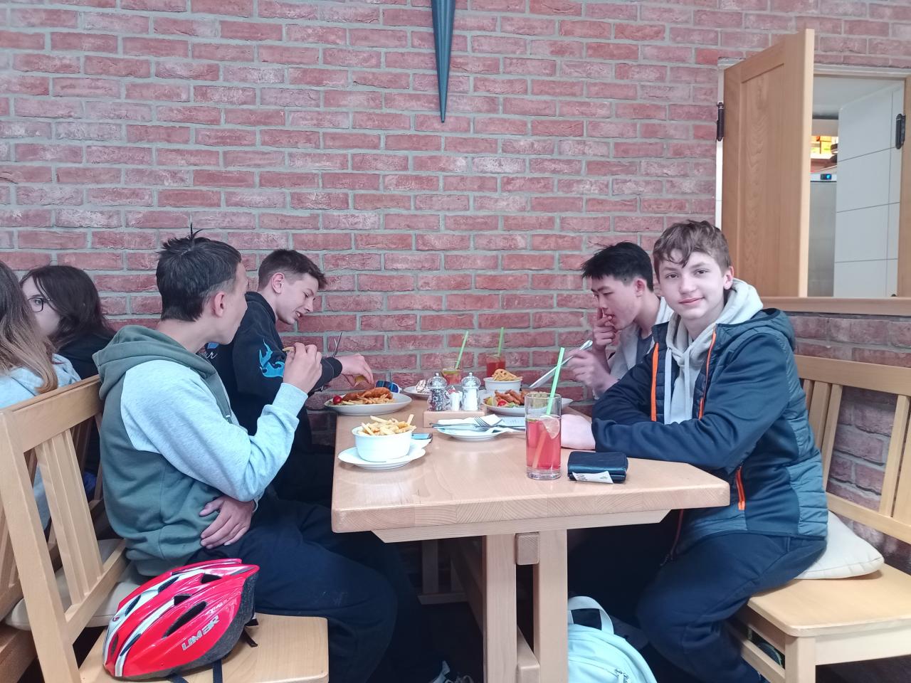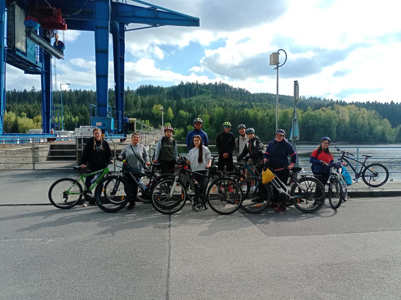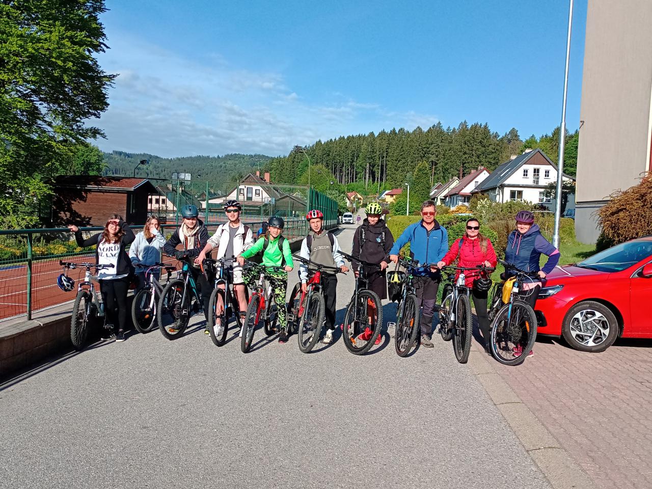 Cyklisté vyrazili od školy na svou naplánovanou trasu- přes Přední Výtoň, na sv. Tomáš, Pasečnou a dále. Odměnou za téměř 50 ujetých kilometrů jim bylo určitě občerstvení ve Frymburku (takový řízek nebo palačinka se po takové námaze určitě hodil).