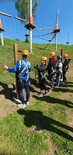 Žáci, kteří si chtěli užít lanový park, vyrazili ráno pěšky na Lipno. Zde si prověřili svou fyzickou zdatnost, překonávali strach z výšek a na konci programu si vyzkoušeli i jízdu kladkou přes rybník.