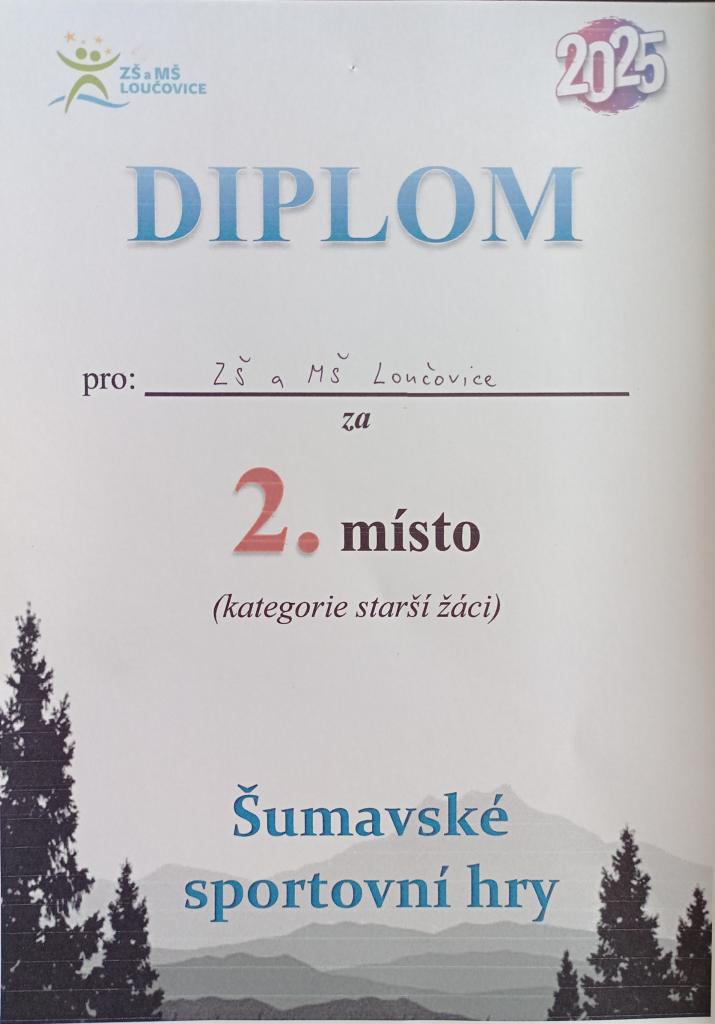 Letos 30. 5. jsme hostili už pátý ročník Šumavských sportovních her! Naši šikovní osmáci a deváťáci pod vedením p. uč. Micáka připravili pro soutěžící spoustu zajímavých sportovních disciplín - chůzi na chůdách, ,,suchý" biatlon, šumavský petanque, speciální opičí dráhu, atd.