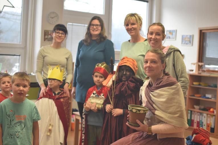 My tři králové jdeme k vám, štěstí, zdraví vinšujem vám.