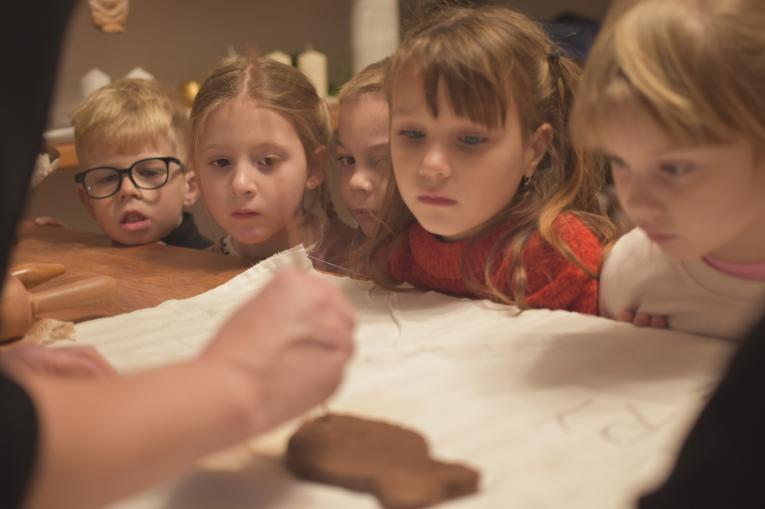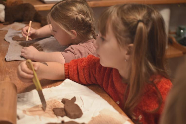 V deset hodin a deset minut už nás vítá Stáňa s maminkou na schodech kouzelného Konvalinkového království, kde létají andílci, houpají se děcka na visutých hrazdách a hoří svíce adventní. Dnes se z hlíny červenice budou tvořit baculatí vánoční kapříci. Ty nám paní sochařka musí vložit do rozpálené pece - pak získají kapříci zlaté šupinkové brnění. To Vám bylo zaujetí, radosti, plácání, hnětení, válení a fantazie...