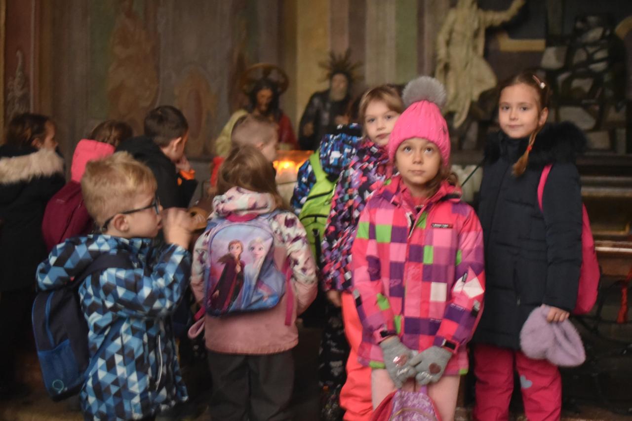 Vše se počalo v Kostele svatého Víta, kde jsme sundali čepice, zazpívali starou českou koledu a zapálili čtveřici svící...