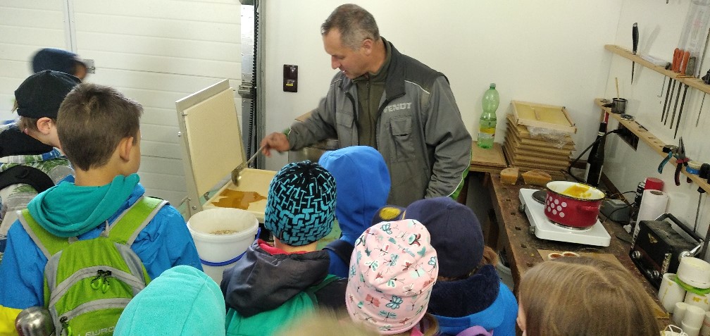 Děti se především dozvěděly, jak se chovají včely, dokonce měly možnost nakouknout pod víko včelího úlu. Kromě svačinky, která byla připravena pro naše druháčky, dostaly děti od pana Murera ještě malý dárek v podobě postavičky z včelího vosku. Velmi oblíbenou atrakcí se pro děti staly balíky sena a samozřejmě výlet traktorem.