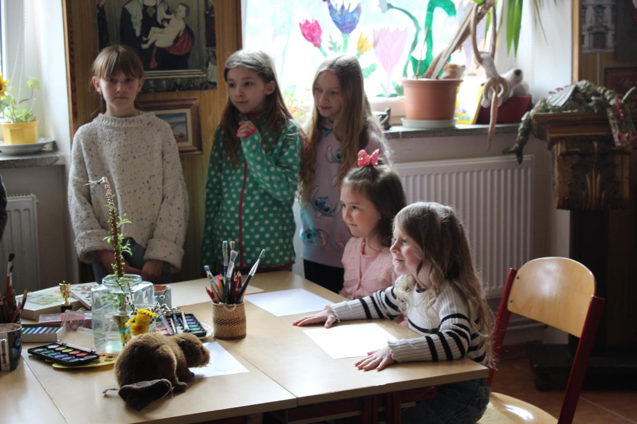 Součástí programu byla také návštěva školní knihovny, kde si s paní učitelkou povídaly o pohádce Červená Karkulka. Děti se aktivně zapojovaly do vyprávění a ukázaly, že mají bohatou fantazii a chuť objevovat svět příběhů.