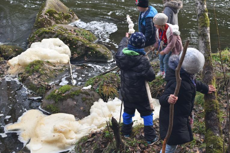 To na naší další výpravě, tentokráte za pověstnou stříbrnou pěnou vltavskou, jsme v zákrutech, tůňkách a úžlabinkách nabírali hustou "šlehačkovou" říční pěnu na bobří hole... To bylo radosti, když nám na okousaném klacíku držela pěna po celou cestu tím kouzelným kaňonem Čertových proudů.