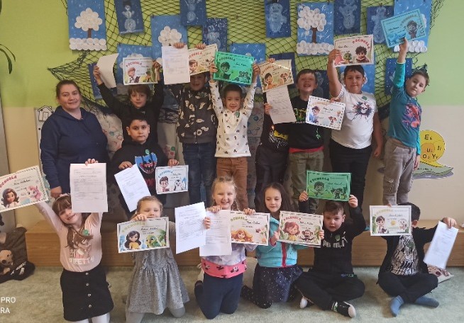 Dne 31.1.2024 dostávali prvňáčci jejich první vysvědčení. Pojali jsme předávání slavnostněji. Začalo se přípitkem (dětské šampaňský) a následovalo sebehodnocení, kde si dávali různé známky. Asi jsem některé zklamala, když dostali jenom jedničky. Potom jsem předala vysvědčení a šlo se do tělocvičny, kde na ně čekalo překvapení - budoucí školáčci. Myslím, že radost ze shledání byla na obou stranách.