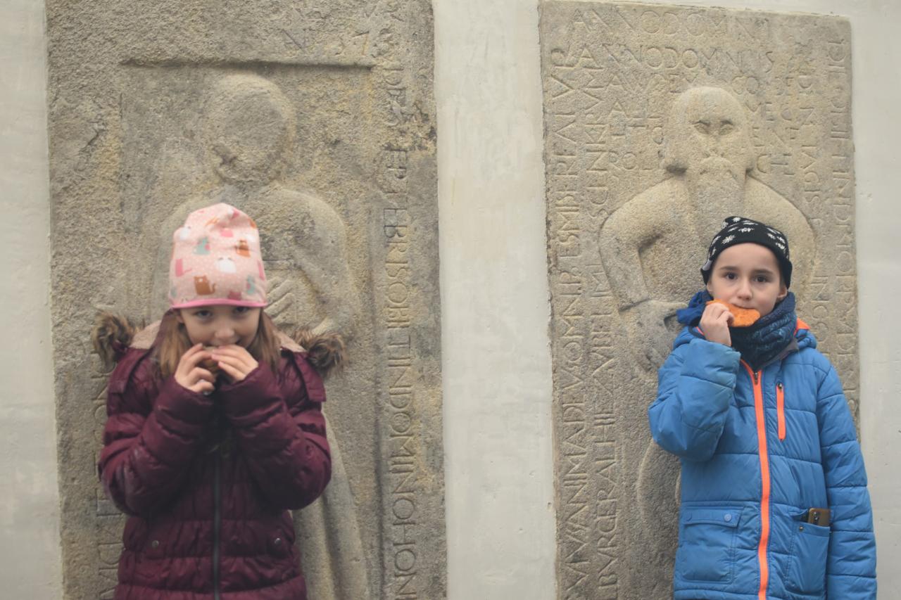 Dále naše kroky vedou ke schodům kostela svatého Víta - letos jsou pěkně klouzavé. Sundáváme čepice, zklidňujeme tělo i duši a vstupujeme do vánočně vyzdobené kostelní lodi. Usedáme do lavic, hledáme Ježíška, Marii a všechny anděly. Nad hlavami nám visí velikánský adventní věnec se dvěma hořícími svíčkami. Zaujal nás také zlatý erb Schwarzenbergů, kde ve čtvrtém zlatém poli je krkavec klovající do hlavy poraženého Turka.