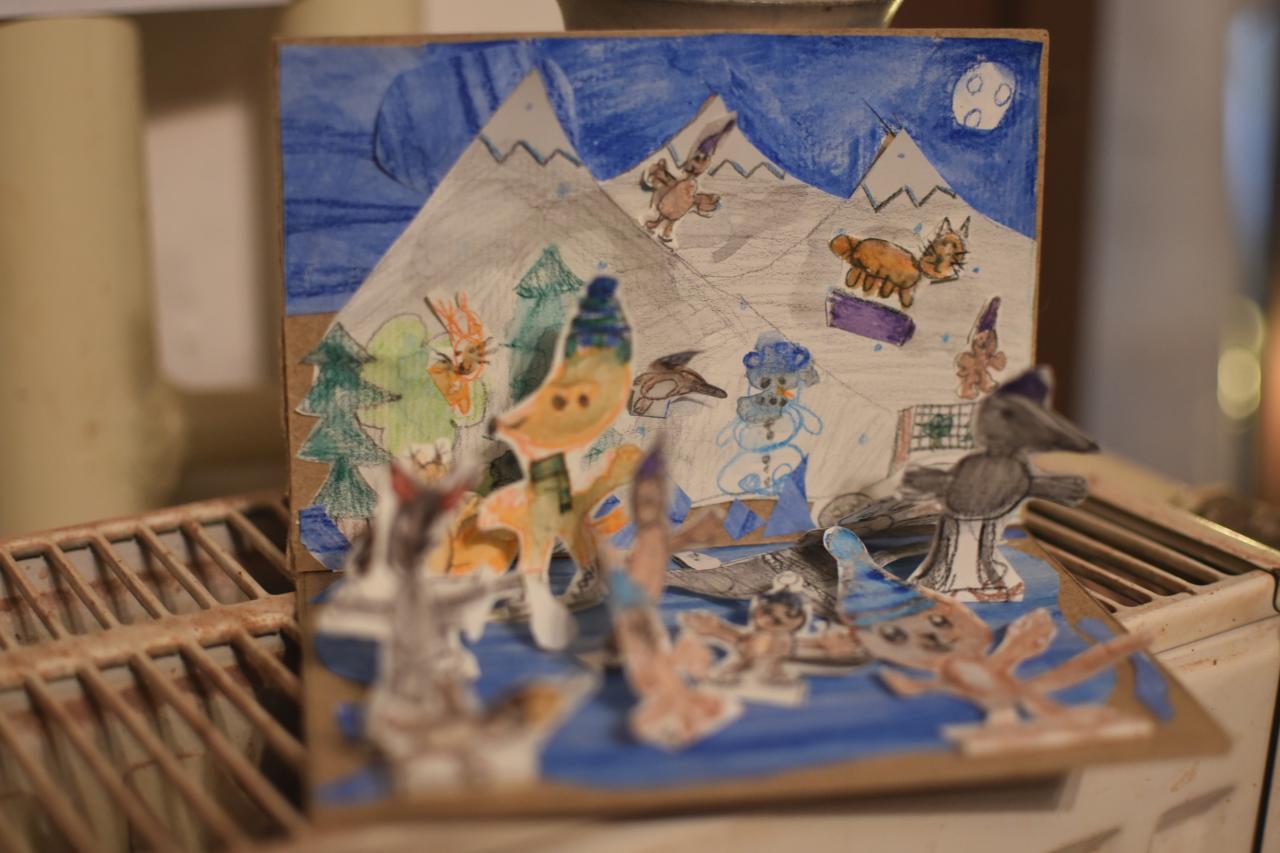 Ve čtvrt na jedenáct už bereme za kliku v atelieru našich kamarádek Konvalinek. Stáňa už má přichystanou hlínu červenici, ze které budeme tvořit vánoční vousaté skřítky. Na návštěvu k přátelům se sluší vzít nějaký dáreček od nás, od Vltavy. Jsou to větvičky královničky jedličky, nádherný dvojbarevný brambořík, skleněná mozaika na keramickou čajovou konvici a malou trojrozměrnou knížečku "Bobříci na ledu a na sněhu". Tu vytvořily šikovné ručičky našich děvčat.