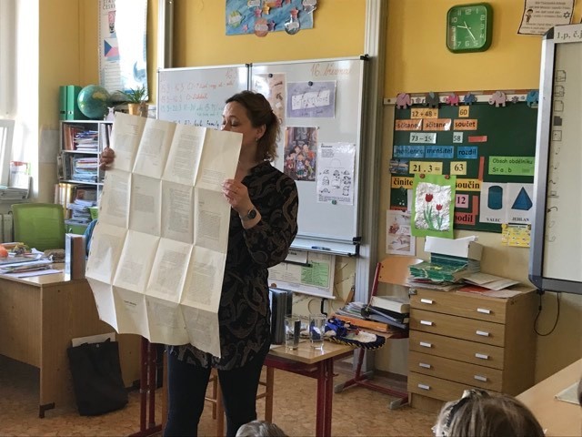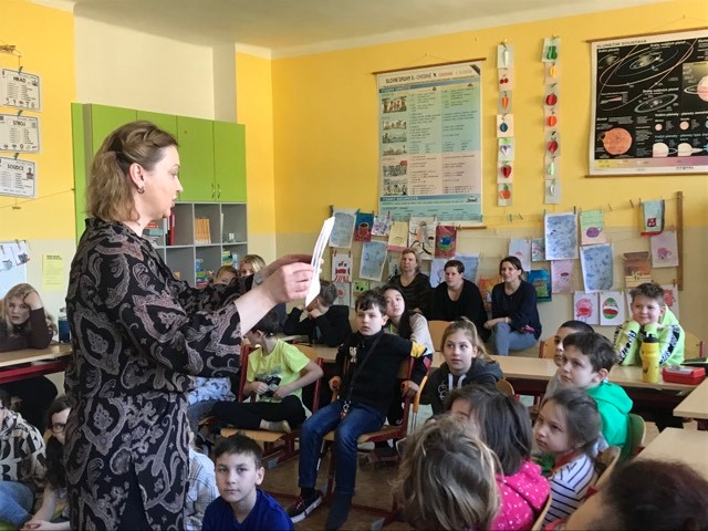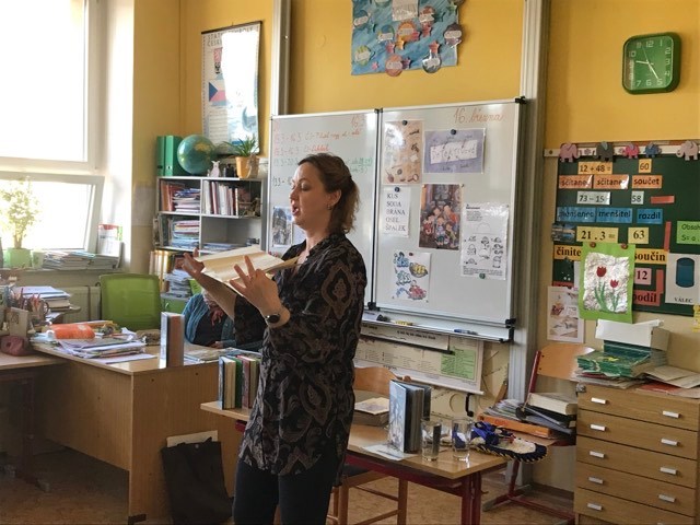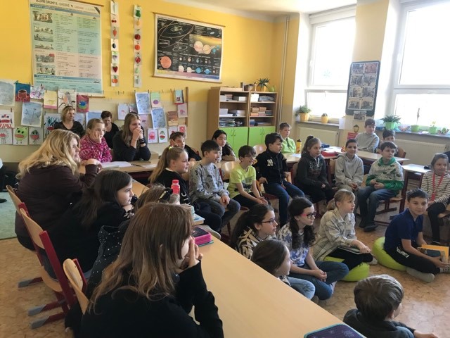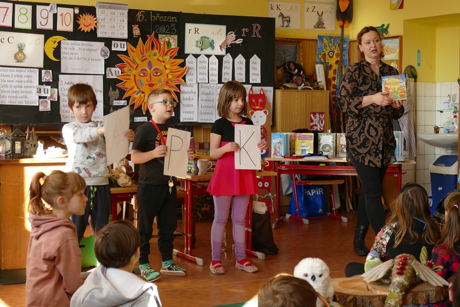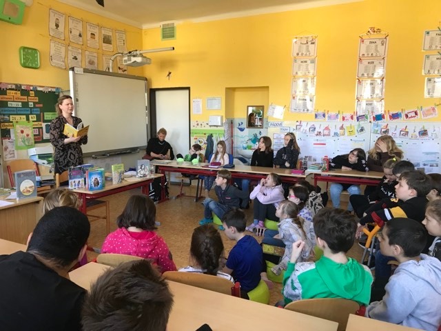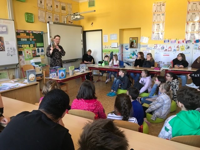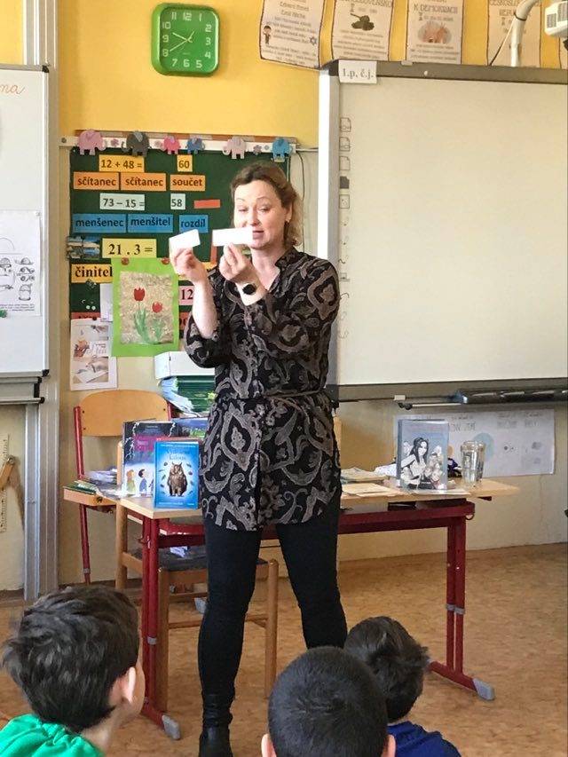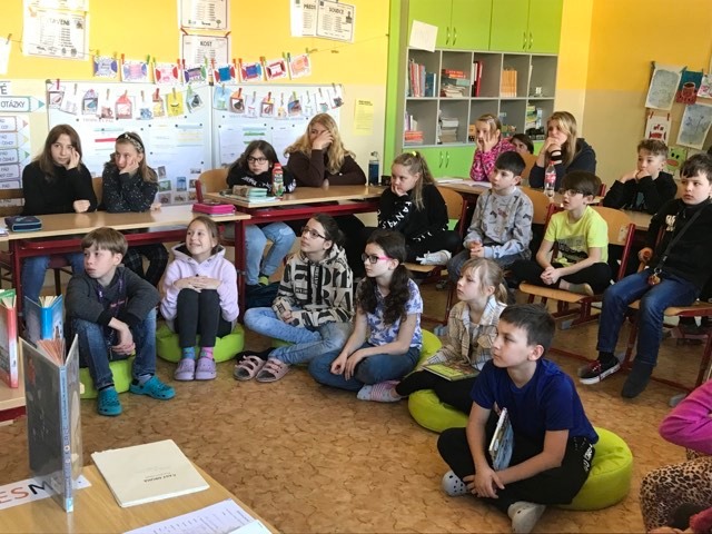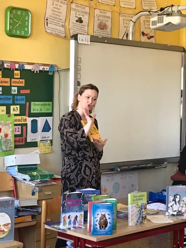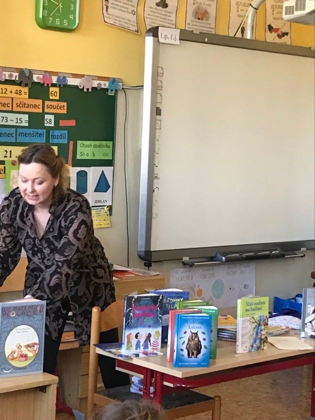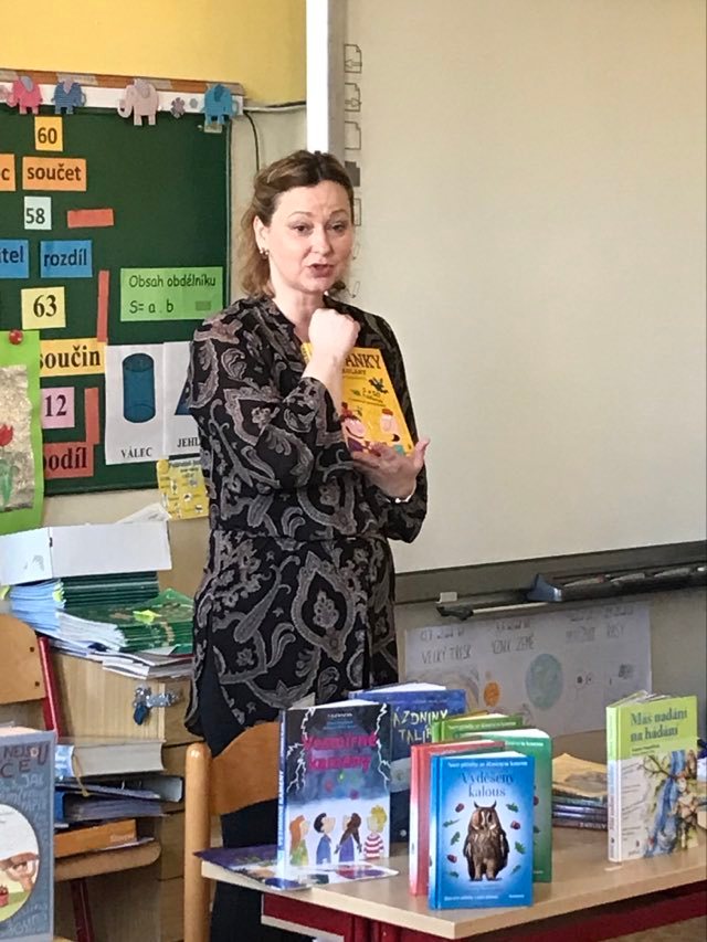 Kluci a děvčata ze všech tříd prvního stupně s otevřenou pusou naslouchají jejímu vyprávění o knížkách, které pro ně s lehkostí sobě vlastní tak krásně píše. Držíme pěstičky všem skřítkům, vílám, neposedům, čertíkům, vodníkům i štěňátkům; hádáme, „Co v puse neposedí a v botě občas zatlačí“. Žasneme nad krásnými ilustracemi v jejích knížkách.