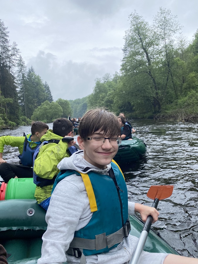 I žáci na druhém stupni slavili Den dětí - a to pohybem. Mohli si vybrat, jestli se zúčastní vodáckého výletu po Vltavě, cyklistické výpravy na nejjižnější bod ČR, výletu do bazénu v ČB či pěší vycházky na Maria Rast.