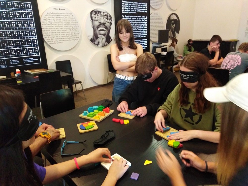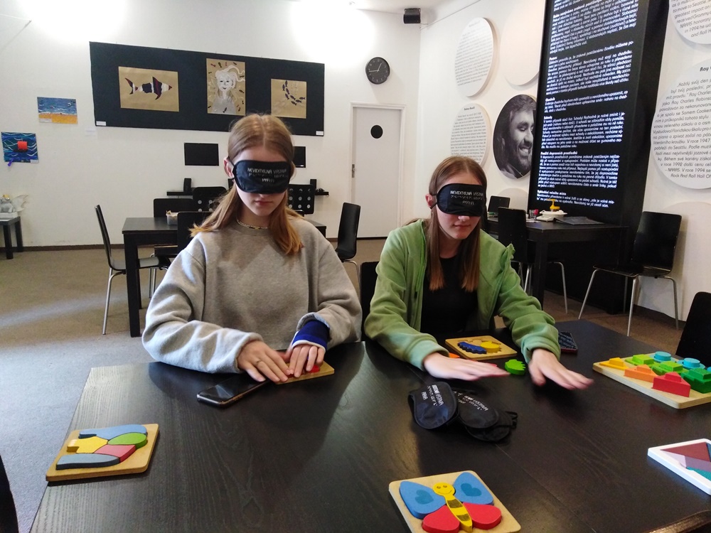 Ráno jsme vstávali v půl sedmé, probudili jsme se do dobré nálady a v 8h odjížděli autobusem do Prahy. V Praze nás čekal krátký rozchod na Václavském náměstí a potom „Slepá výstava“. Ta dost z nás překvapila asi úplně ze všeho nejvíce. Před vstupem do výstavy jsme si mohli vyzkoušet poslepu poskládat stavebnice, zahrát si různé hry a seznámit se s pomůckami pro nevidomé a slabozraké. Asi nikdo z nás nečekal, že tam bude taková tma. Lukáš čekal, že na výstavě něco uvidí a nejvíc ho překvapilo, „že neviděl vůbec nic“. Mohli jsme si zkusit projít byt, potom ulicí, poznávat různé sochy, orientovat se v prostoru a na konci nás čekal bar, kde jsme si mohli zkusit něco koupit a vypít (vše potmě). Po neviditelné výstavě nás čekal další hodinový rozchod a potom hurá vlakem domů. Byl to super výlet.