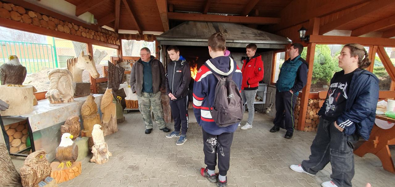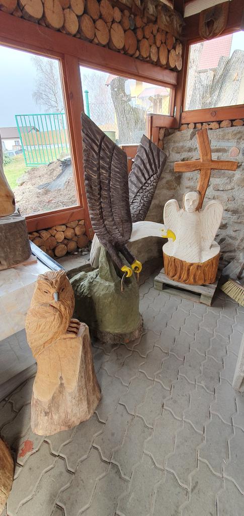 nachází řezbářská dílna, ve které nám pan Račák ukázal své výrobky ze dřeva.