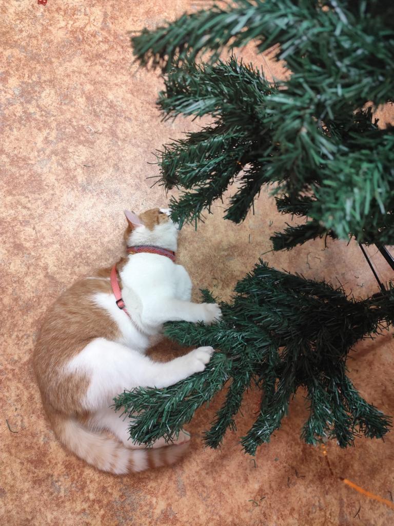 Od samého začátku se do dění zapojil i náš terapeutický kocour, který se pustil do odstrojování pracně nazdobeného stromku :)